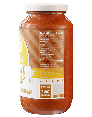 Handcrafted Sauces Gluten Free, No Preservatives, No Sugar Added.